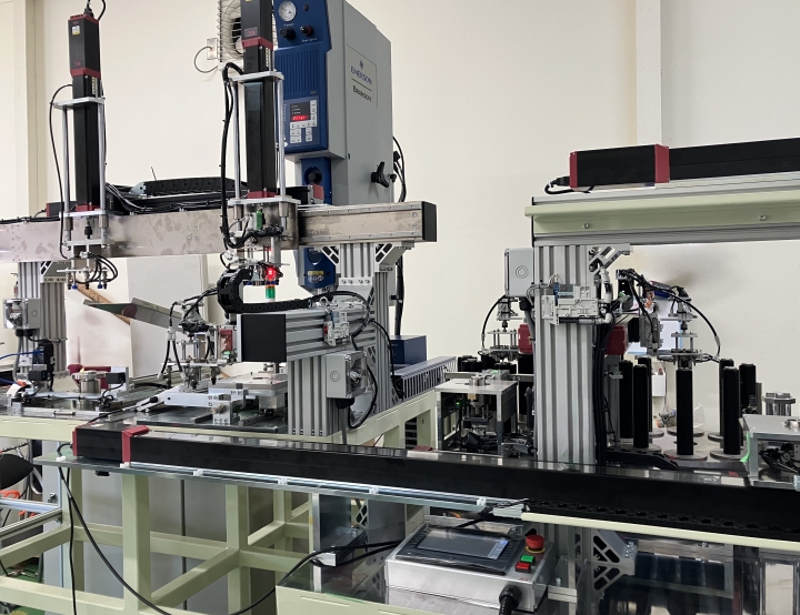 位置決めが困難な形状のワークの組付と、溶着までを行う自動機を製作しました。